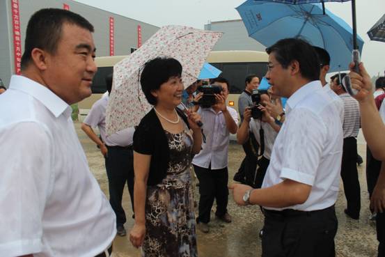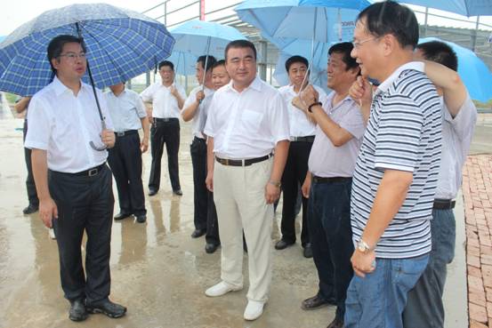 本月25日下午,在市委書記劉可為以及其他市四大班子主要領(lǐng)導(dǎo)的帶領(lǐng)下,參加全市項(xiàng)目觀摩拉練會(huì)議的與會(huì)人員一行,冒雨來我公司項(xiàng)目工地現(xiàn)場參觀。參觀現(xiàn)場,市委書記劉可為親切會(huì)見了在我公司指導(dǎo)項(xiàng)目建設(shè)工作的中國絕熱節(jié)能材料協(xié)會(huì)秘書長胡小媛女士和項(xiàng)目技術(shù)支持單位南玻院工程師蔣偉忠先生。我公司項(xiàng)目的主要技術(shù)依托是南京玻纖院。該院在研究和設(shè)計(jì)領(lǐng)域,是我國同業(yè)資質(zhì)最高、技術(shù)力量最為雄厚的院所。我們的全套工藝以及后續(xù)生產(chǎn)中的技術(shù)支持,均有該院提供。