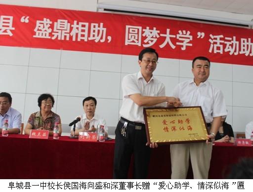 8月24日,“盛鼎相助、圓夢大學”活動捐助儀式在阜城縣一中禮堂舉行,市婦聯副主席鄭彥敏、縣委副書記呂繼武、縣人大副主任宋廣營、縣政府副縣長劉新榮、張榮霞、縣政協副主席魏蘭茹、河北盛鼎保溫材料有限公司董事長盛和深、副總經理王福良出席了儀式。參加儀式的還有縣婦聯、縣教體局和一中的負責人及教職員工。本次受助學生及其家長也參加了捐助儀式。