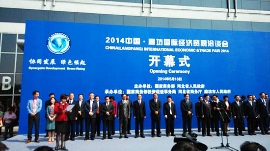 2014中國•廊坊國際經(jīng)濟貿(mào)易洽談會于5月18日在河北廊坊啟幕。本屆洽談會以“協(xié)同發(fā)展、綠色崛起”為主題,抓住京津冀協(xié)同發(fā)展和環(huán)渤海加速發(fā)展的歷史性機遇,緊緊圍繞提升改造傳統(tǒng)優(yōu)勢產(chǎn)業(yè)、加快培育戰(zhàn)略性新興產(chǎn)業(yè)、大力拓展現(xiàn)代服務業(yè),突出在節(jié)能環(huán)保產(chǎn)業(yè)技術(shù)、裝備、產(chǎn)品和服務等方面的合作,注重產(chǎn)業(yè)對接、企業(yè)對接、項目對接和產(chǎn)銷銜接,著力打造更加區(qū)域化、更具品牌化、更趨國際化、更重市場化,具有較強吸引力、較大影響力的國際投資貿(mào)易促進平臺。