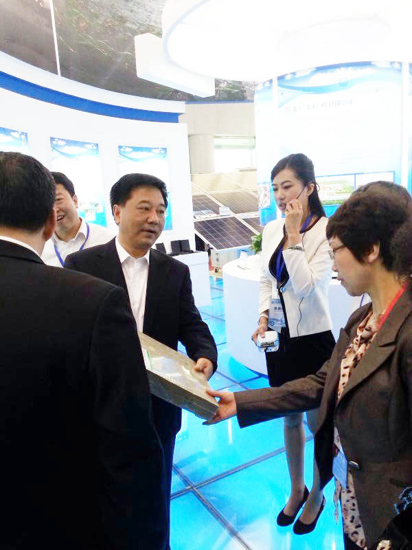 衡水市委副書記、市長楊慧向與會省領(lǐng)導介紹我公司綠色無機主導產(chǎn)品。