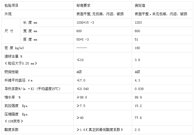 巖棉技術參數: